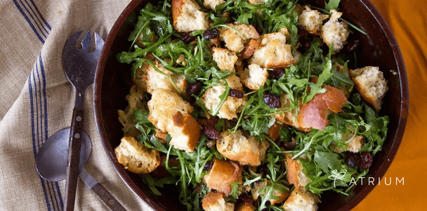 If you’re looking for a lighter, more healthy alternative to the heavy potluck dishes, the Autumn Panzanella Salad is a great option. This delicious blend of crispy pancetta, peppery arugula, and sauteed shallots is not one to miss. Get the recipe.